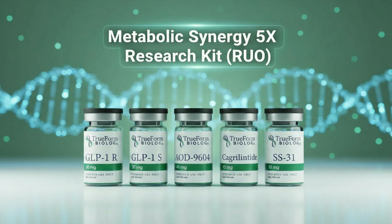 Unify energy biology and metabolic research insight with the Metabolic Synergy 4X Research Kit (RUO) from TrueForm BioLOGx — a comprehensive five-peptide system engineered for advanced in-vitro and preclinical analysis of metabolic homeostasis, energy conversion, and peptide-based neuroendocrine mechanisms.