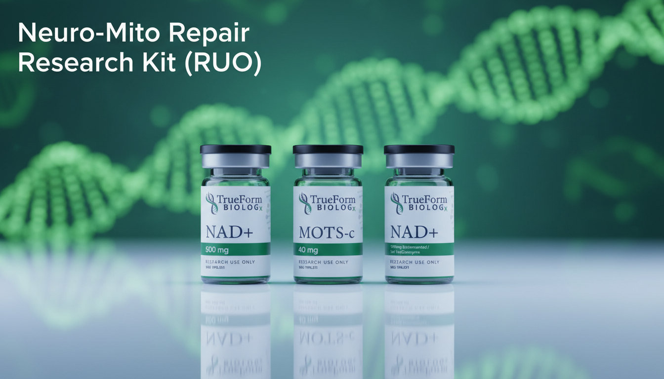 Rebuild cellular vitality and neural stability with the Neuro-Mito Repair Research Kit (RUO) from TrueForm BioLOGx — a precision formulation of three bioactive compounds engineered to advance in-vitro and preclinical studies of energy metabolism, oxidative repair, and neuronal resilience.
